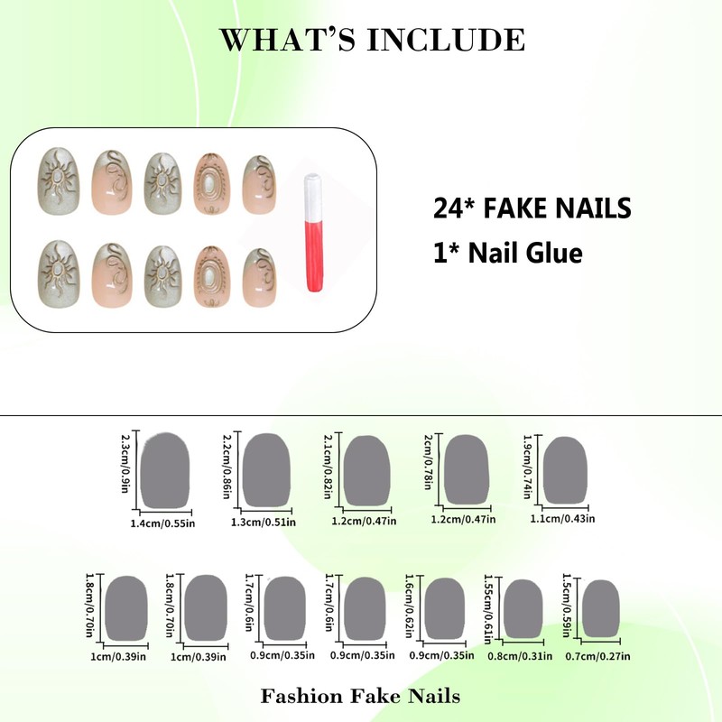 - [Package Content] You will get 24 pieces of IMRAIN short oval press on nails, a small clear box with glue, and you can trim it to any length you want~