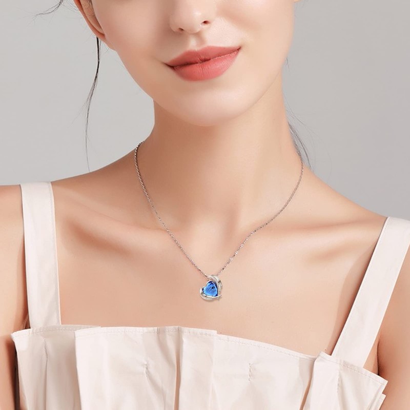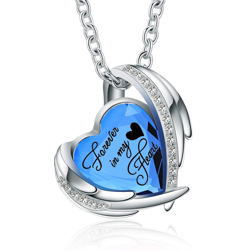 Imrsanl Heart Urn Necklace for Ashes for Women Girl Cremation Jewelry with Crystals Memorial Lockets Urn Pendant for Human Ashes Forever in My Heart (Silver Blue)