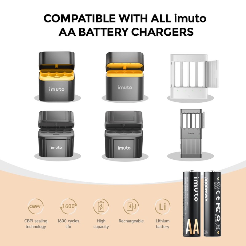imuto Rechargeable aa Batteries, 3000mWh aa Lithium Batteries 8 Pack, 1.5V 2A Output Double a Battery, 1600+ Cycle Life