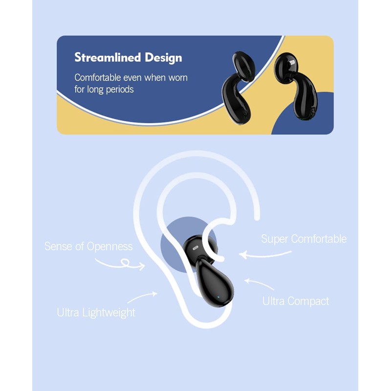 - In-Ear Design:Unlike traditional in-ear earbuds, these earbuds do not need to be inserted deep into the ear canal. Instead, they rest gently at the ear’s entrance, allowing easy conversation with others while listening to music. Stay aware of your surroundings without removing your earbuds.