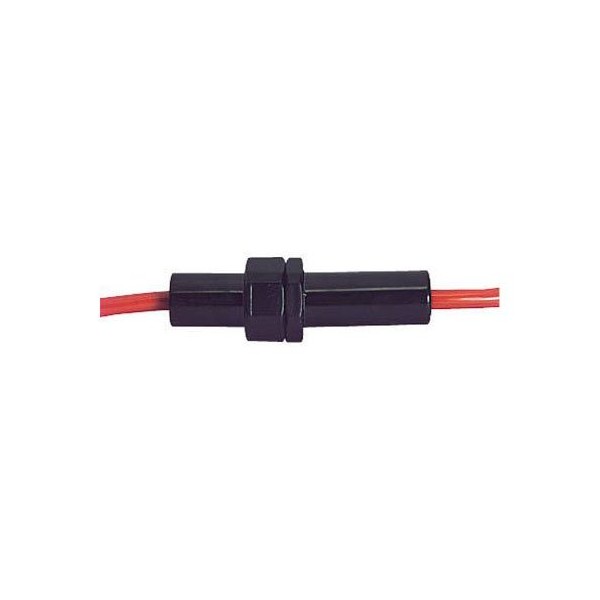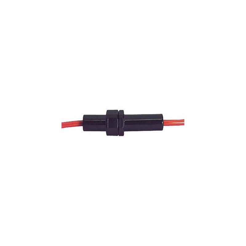 Heavy duty fuseholder for high current car stereo installations. Screw together Bakelite fuseholder with 8 ga. wire. For use with AGU type fuses or regular AGC fuses when a spring spacer is used. 50 amp max at 12 volts.