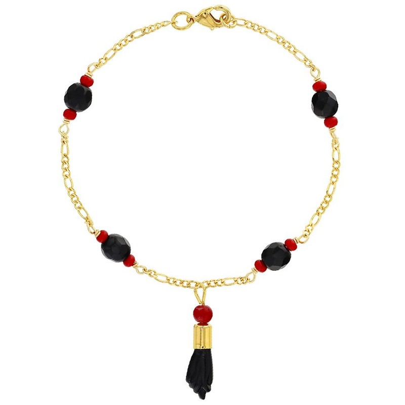 - DETAILS: A traditional classic evil eye protection bracelet that will bring good luck and ward off bad energy while staying in style! A simple black Figa hand hangs in a gold-plated link bracelet for a more stunning touch, perfect jewelry for teens and women. They will love to wear this timeless and elegant accessory all day and night. This will be a great gift to yourself or for a loved one. Wrapped neatly in a stylish and beautiful gift box for easy gift-giving.