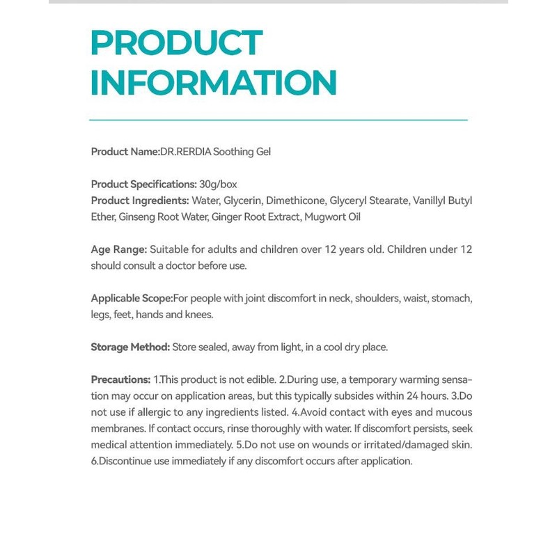 DR.RERDIA Soothing Gel with Ginseng, Ginger & Mugwort – Gentle Hand & Joint Care