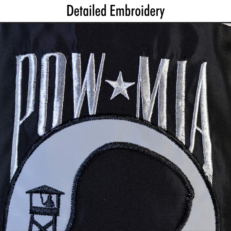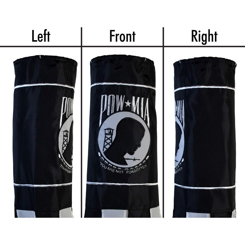 • The windsock body has a detailed POW-MIA appliqué and embroidered design. There are 8 coordinating streamer tails with sewn edges.