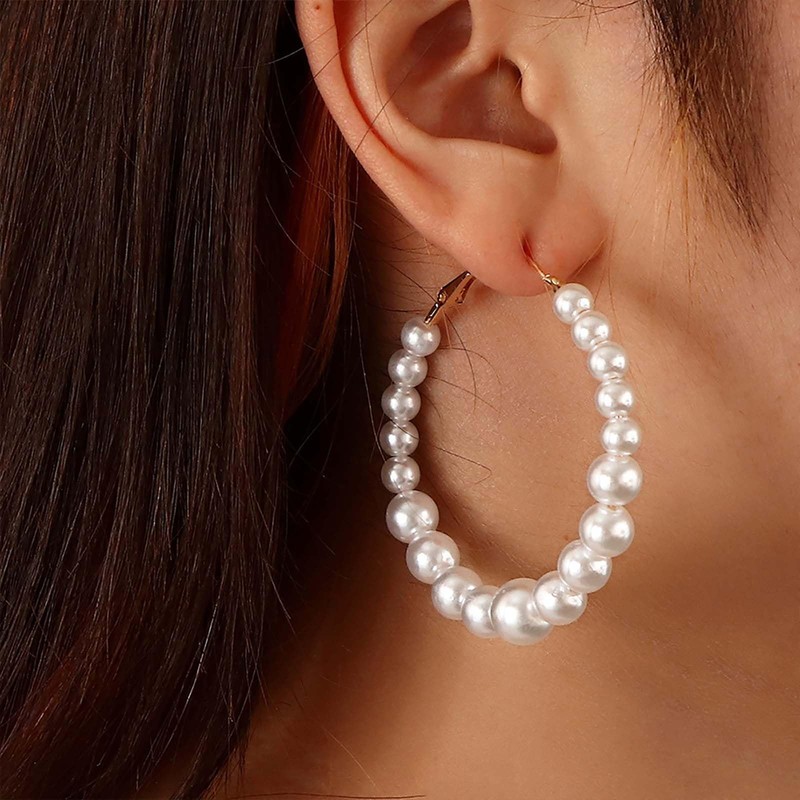 Inateannal Boho Large Pearl Hoop Earrings Pearl Circle Dangle Earrings Gold Hollow Circle Drop Earrings Round Hoop Pearl Earrings Pearl Huggie Earrings Jewellery for Women, Zinc, No Gemstone