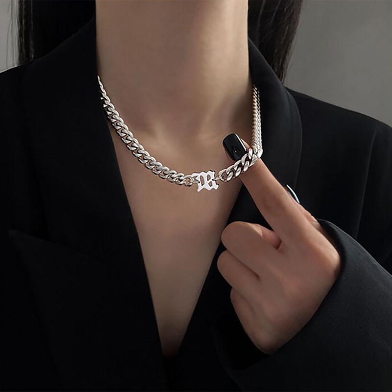 - Cuban chunky chain necklace.item details:handmade item.size:as shown.color:silver.materials:quality alloy.location:neck.style:boho/vintage