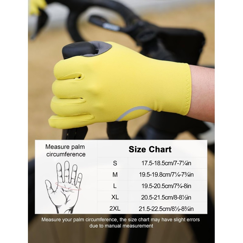 - [Reflective Logo & Anti-slip]: The back and index finger of this glove are designed with a reflective logo to improve visibility and safety when riding at night. The silicone logo in the center of the palm has an anti-slip function.
