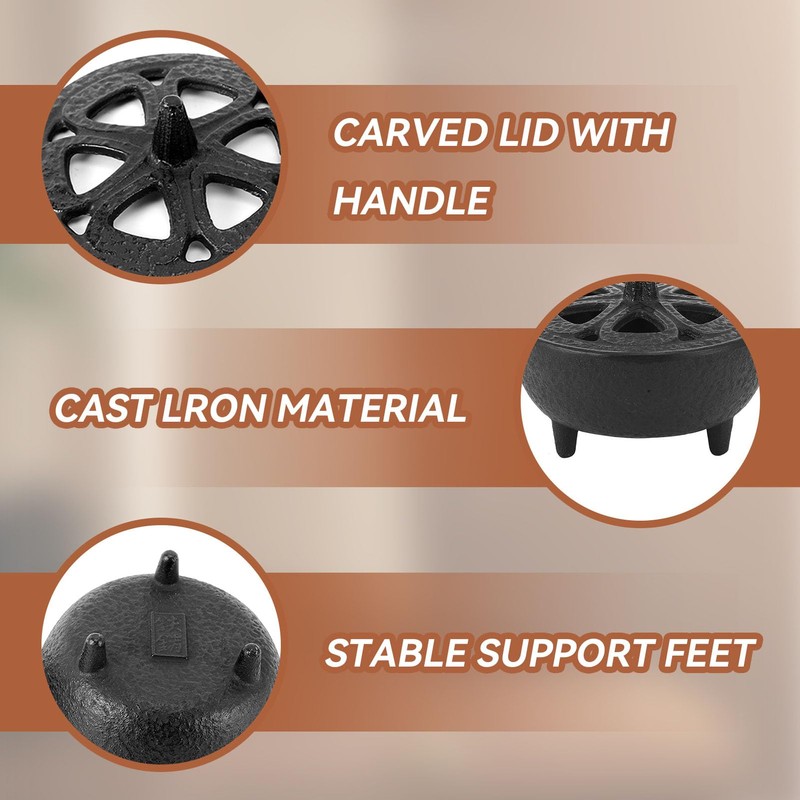 Condition: Brand NewItem Type: Incense Aromatherapy BurnerMaterial: Cast IronColor: BlackProduct Size: Approx. 8.5 x 8.5 x 7cm / 3.3 x 3.3 x 2.8inScope of Application: Any room, basement, bathroom, bedroom, store, restaurant, etc.Weight: Approx. 300g / 10.6oz
