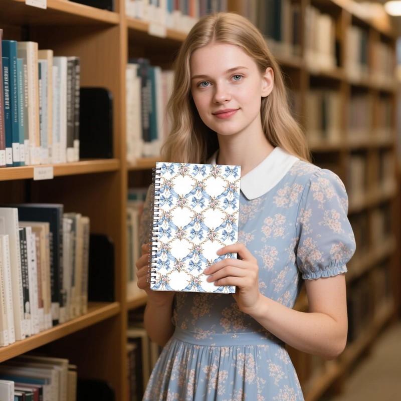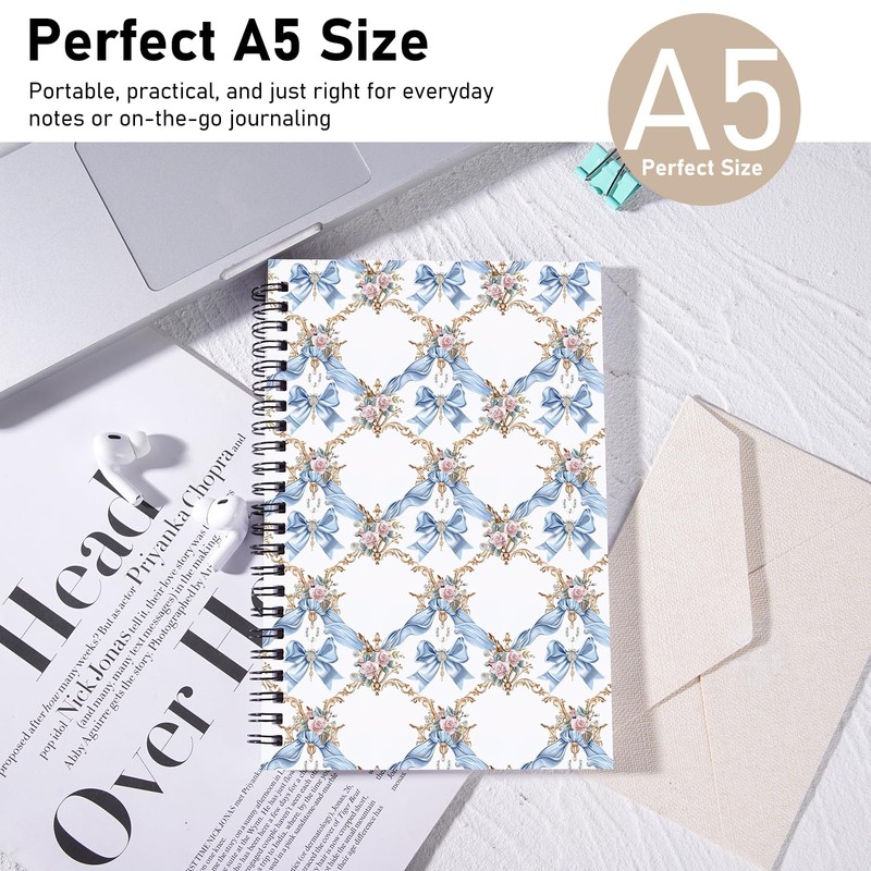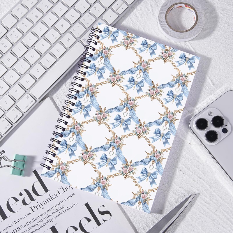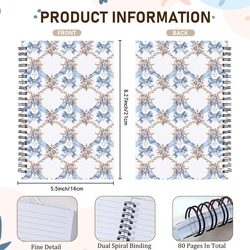 INCOK Spiral Notebook for Women - Preppy Note Book Cute Notepad School Study Stuff Office Stationery Supplies for Students (blue bow02)
