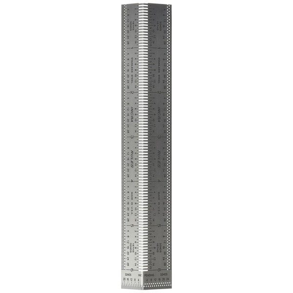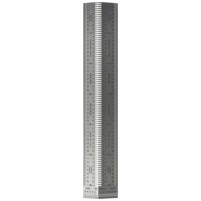 The New INCRA Bend Rule is precisely what you need for layout and measurement along the edge of a board or other workpiece. We've put micro-fine marking holes every 1/16" and 1/32" to instantly locate your sharp pencil point or scribe EXACTLY on target with zero uncertainty, zero parallax and zero eye strain. The 90 deg. shape holds it snugly in place while the two scale surfaces let you mark and measure on the top, edge and corners simultaneously. There are even two vertical end scales with marking holes for drawing precision parallel lines relative to the edge of your work. Available in 6", 12" and 18" lengths. Engraved stainless steel.
