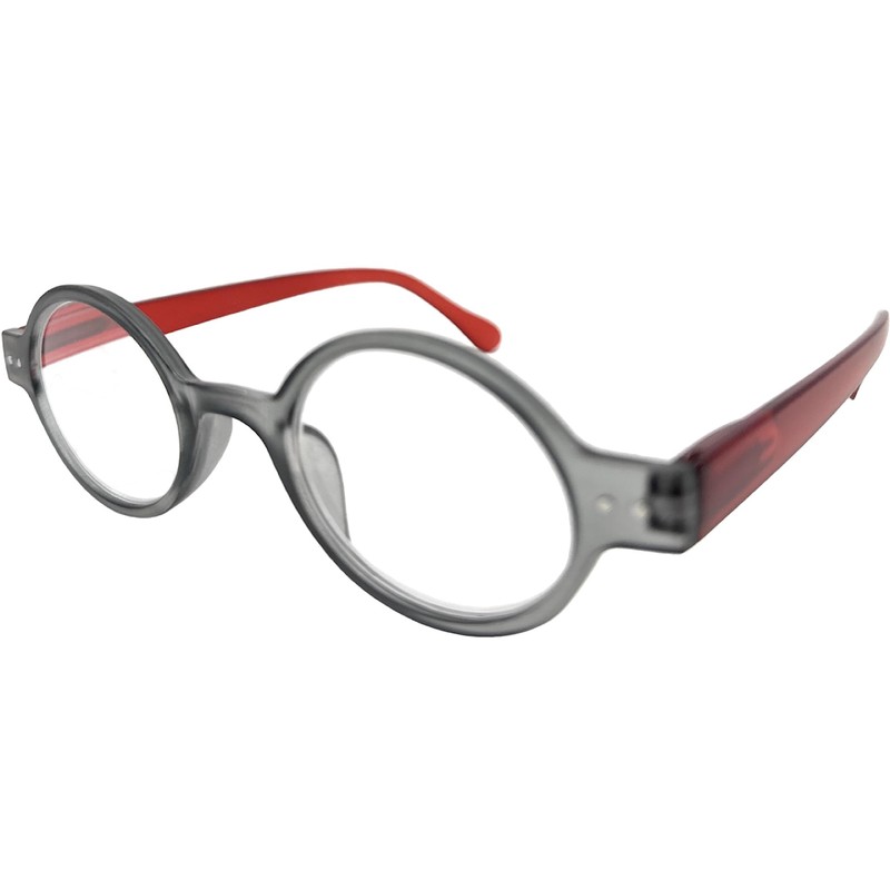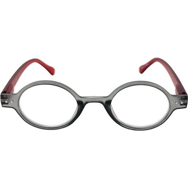 Incredible Bargains The Poppy, Plastic Round Style Reading Glasses + 3.00 Grey and Red