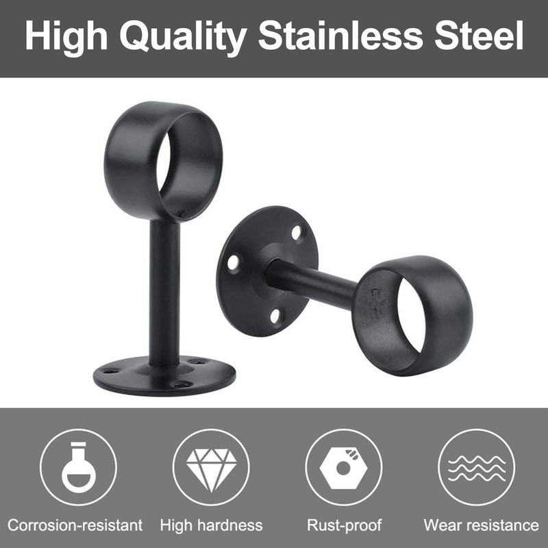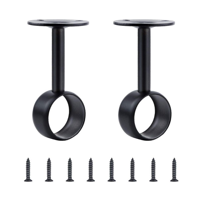 INCREWAY 2 Pcs Black Stainless Steel 32mm Inner Diameter Ceiling Curtain Pole Bracket Bracket Durable Brackets