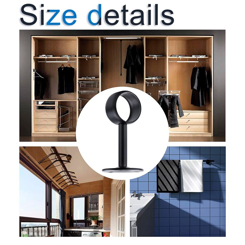 2 sets of black curtain rod brackets, including screws. Overall Size of Curtain Rod Bracket 90mm x 46mm Hole Diameter 32mm
