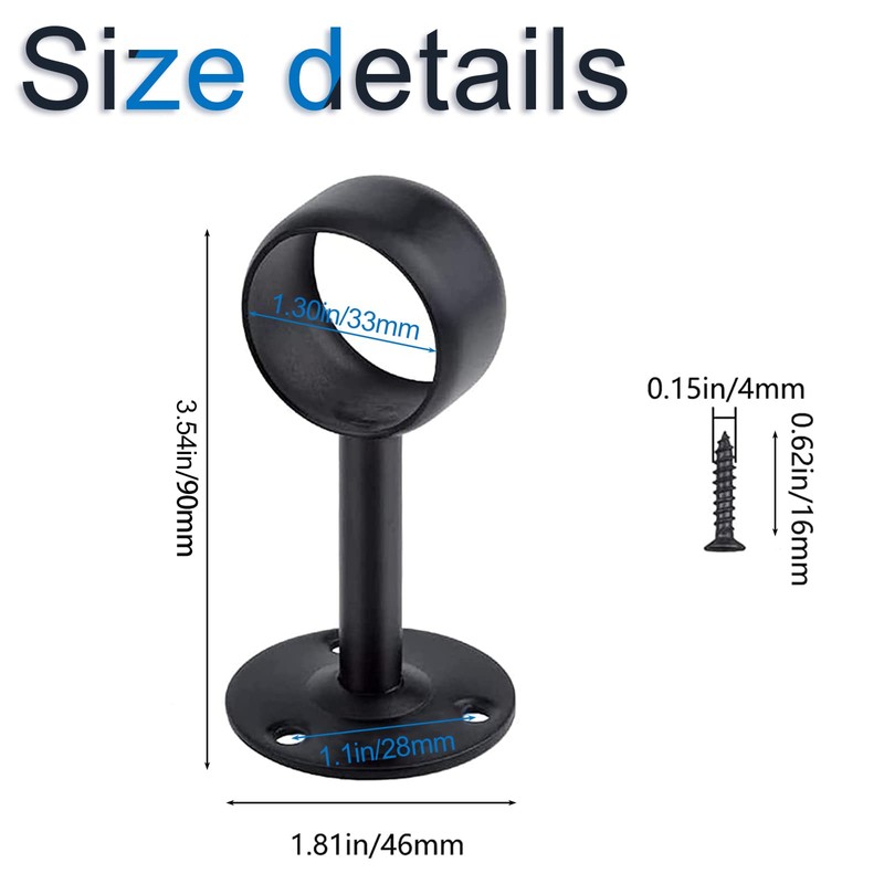 - Package Content 2 sets black curtain rod brackets, including screws. Overall Size of Curtain Rod Bracket 90mm x 46mm Hole Diameter 32mm