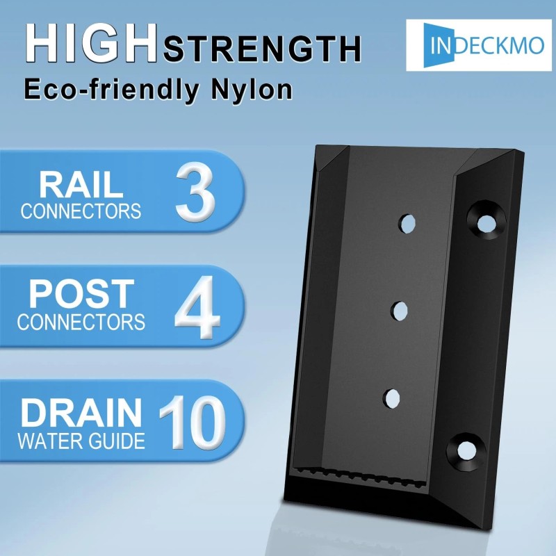 【Drainage Design】Our railing connectors are water damage resistant and We added a drainage design at the bottom of the connector to avoid excessive soaking of the railing to the wooden railing. It also offers a long service life and low maintenance.