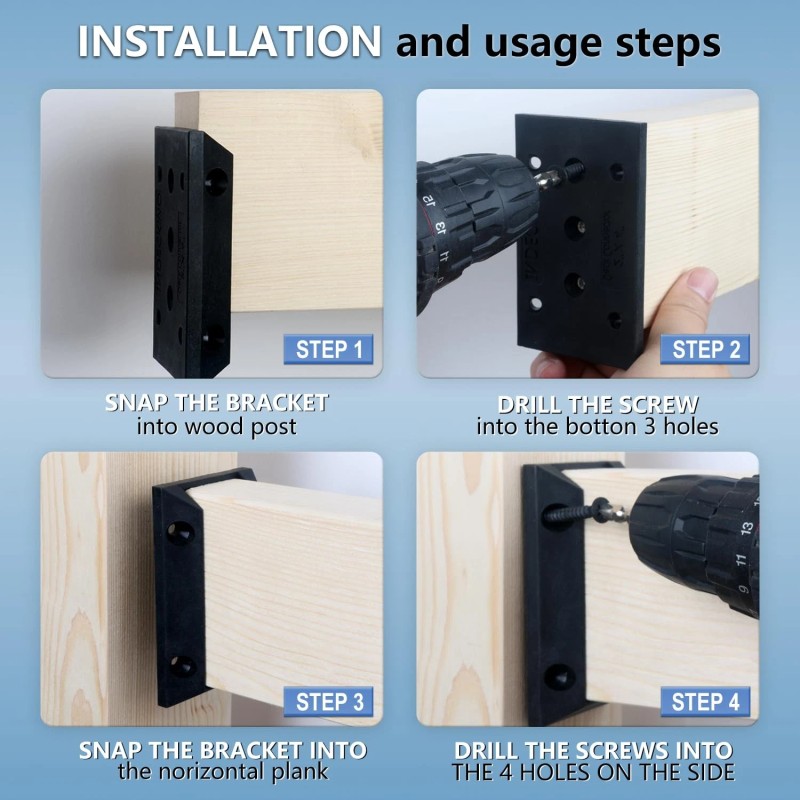 【Wide Application】 Rail connector designed for level wood railing. Great for deck railing, garden fences, porches, pavilions, pergolas, log cabins, etc. Better yet, our deck railing bracket is more affordable than metal, you can build a new railing for less money.