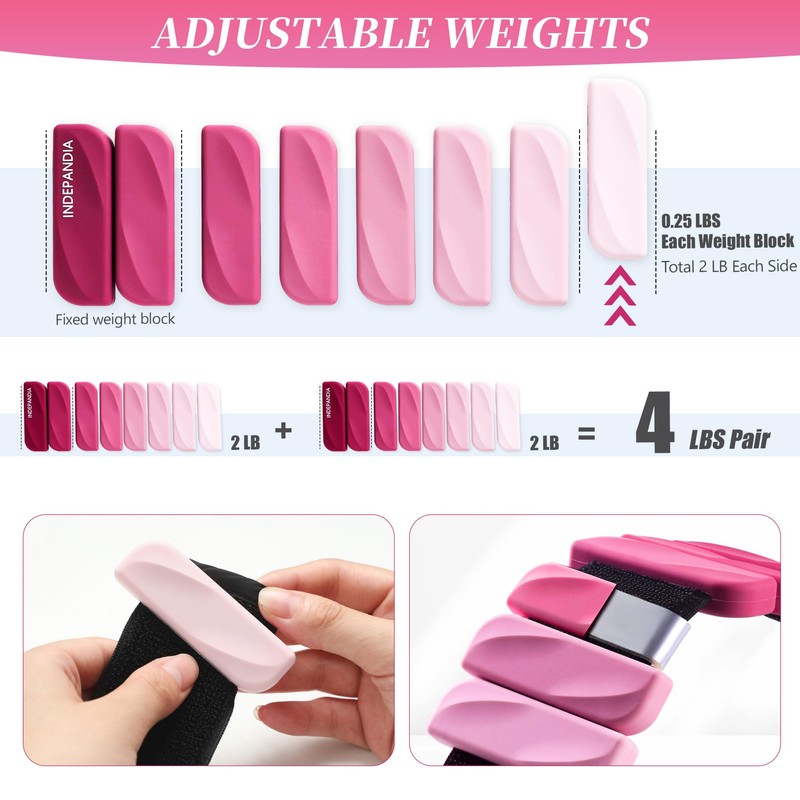 - Adjustable Weights: Our ankle weights are sold in pairs, each weighing 2 lbs total for 4 lbs. Each removable weight block weighs 0.25 lb, allowing you to customize your resistance based on various workouts and intensity levels. These wrist weights are ideal for beginners and seasoned users alike.