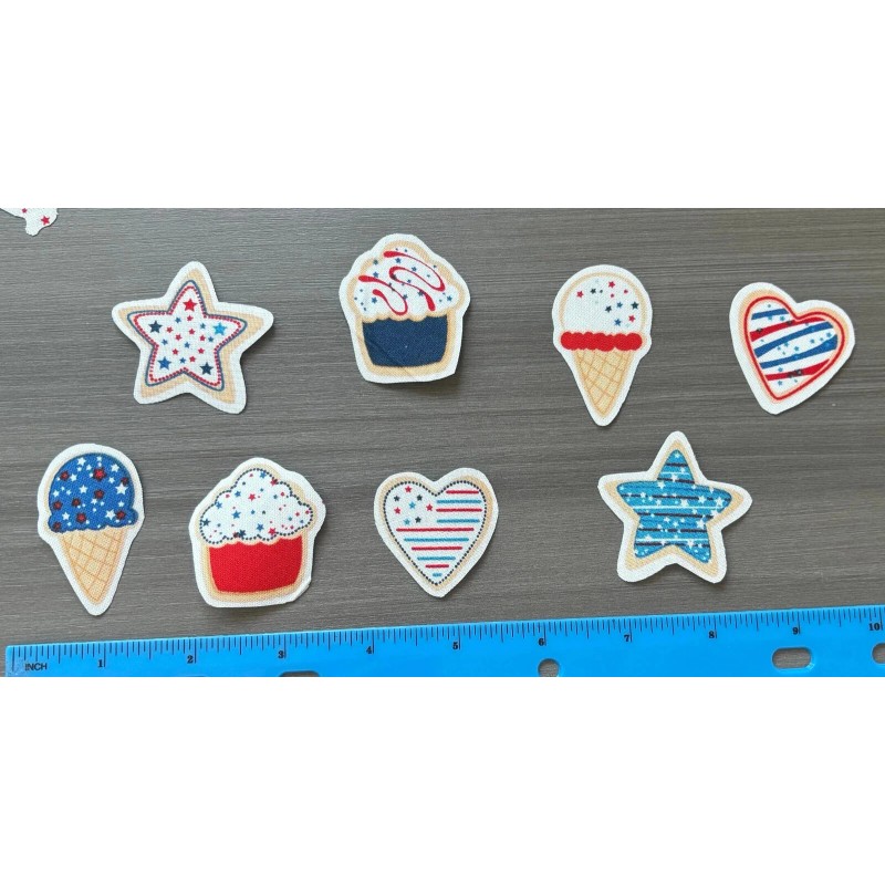 These are Independence Day Ice Cream Cones ~N~ Cupcakes -N- Cookies Iron on Fabric Appliques Pre-Cut