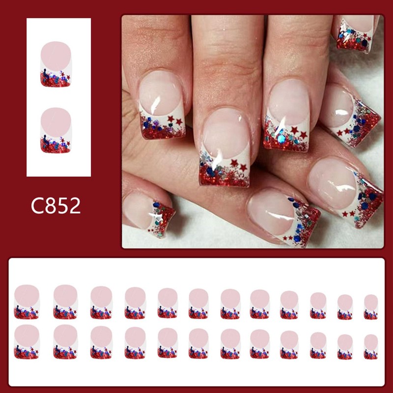 - Just choose the 4th of july false nail piece that suits you, polish the nail bed, apply the jelly glue we provide, and press it on the nail for 30 seconds to get a natural manicure that girls like. No need to spend a lot of time and money to go to the nail salon, the perfect alternative to nail polish.