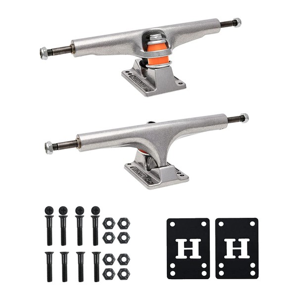 - Durable, high performance truck for all types of skateboarding. 356 T6 Aluminum hanger and baseplate, solid Chromoly steel axle, grade 8 kingpin, Indy cushions with cylinder bottom. Featuring superior turn and stability, better grind clearance, improved no hang-up yoke for grind tricks, and less wheel bite.