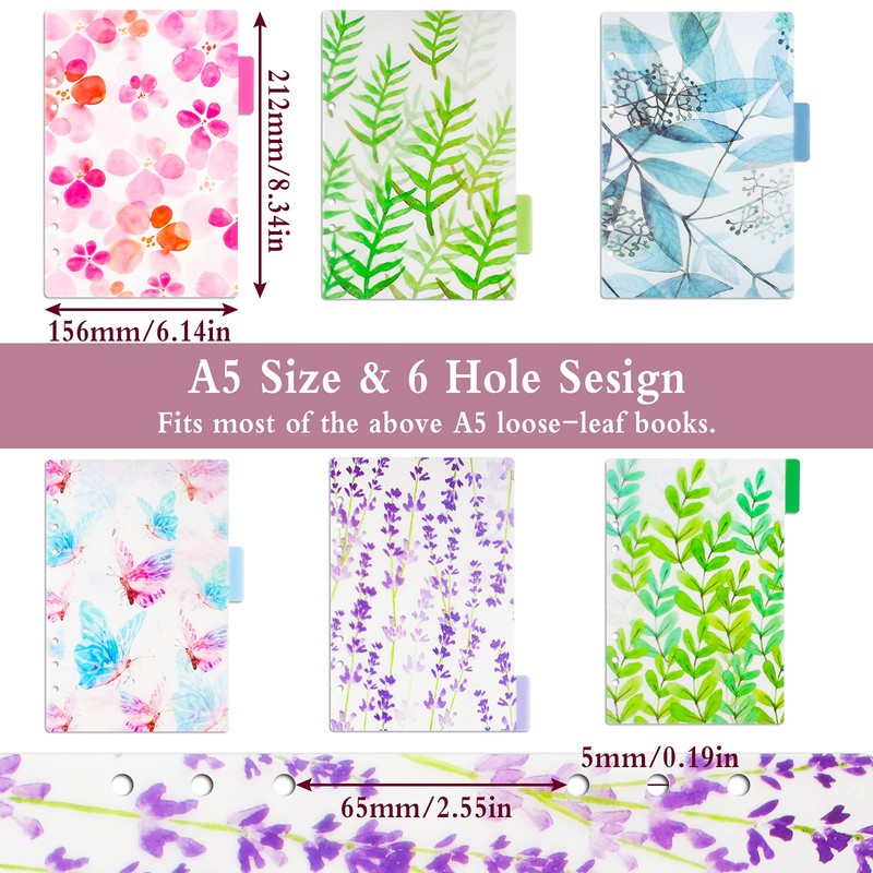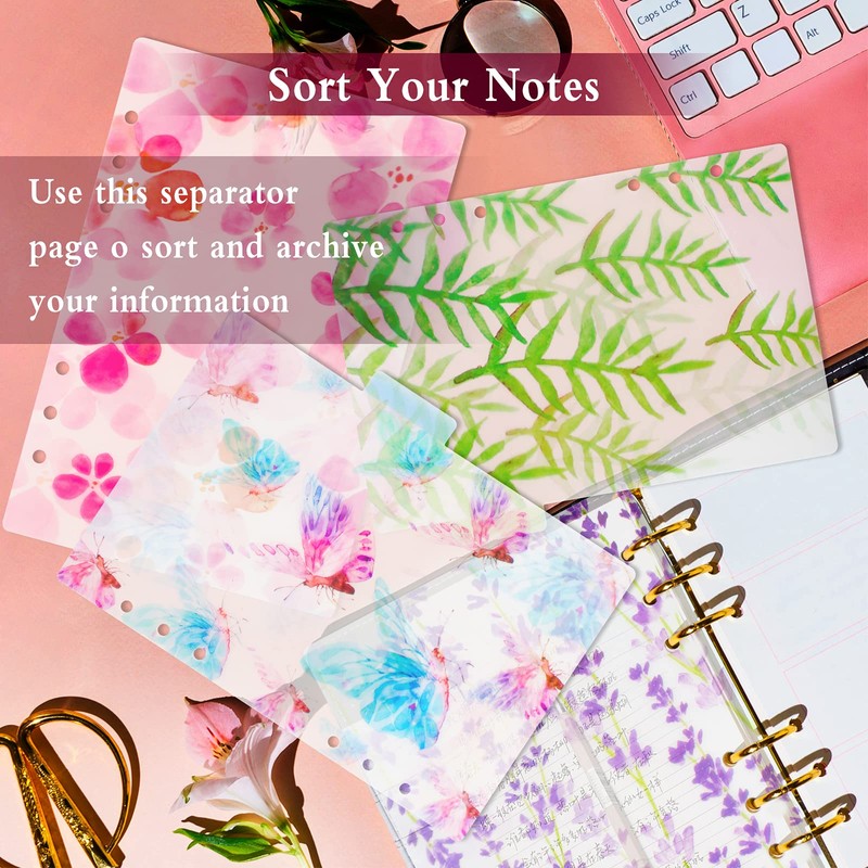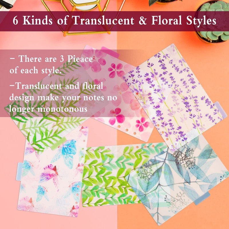 - 6 styles: there are 6 styles of A5 dividers, and each style has 3 sheets. The translucent and floral design makes your notes no longer monotonous. Different styles and large quantities are enough to meet your needs.