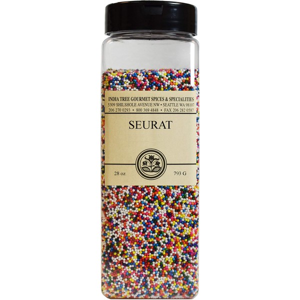 • Use India Tree Seurat multi-colored nonpareils to decorate cakes, cupcakes and cookies. Rainbow sprinkles add a burst of color to any baking.