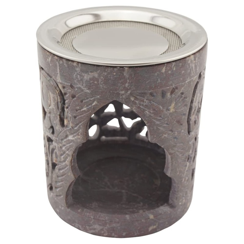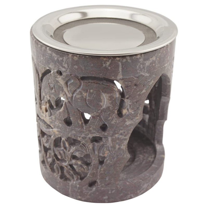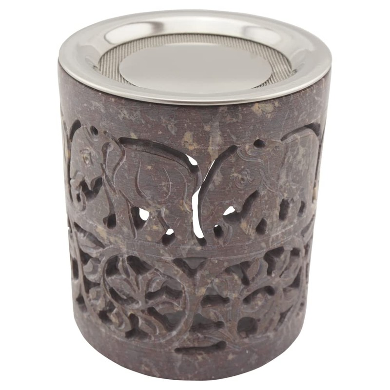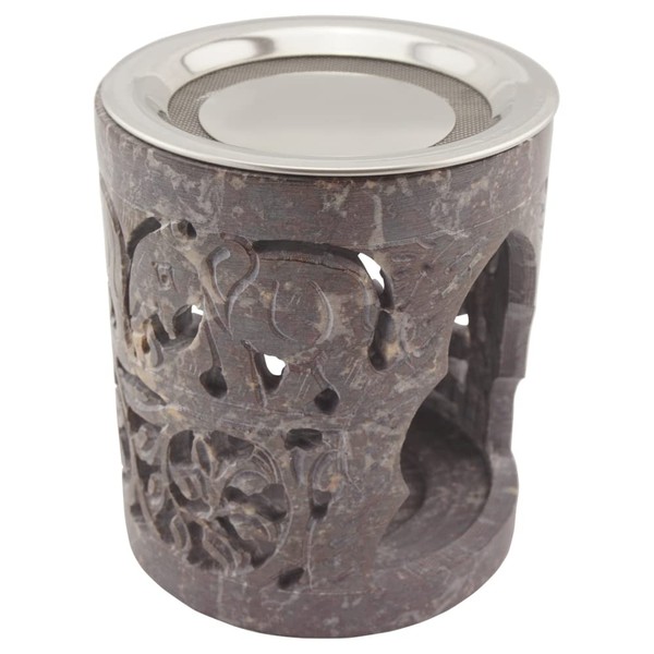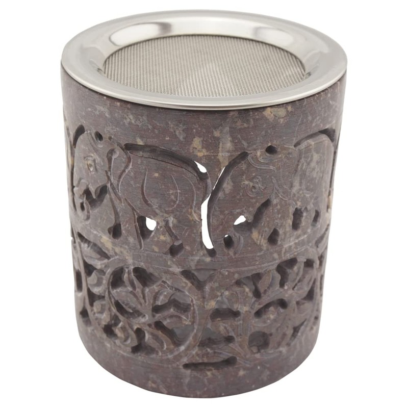 Indian Soapstone Incense Burner - Elephant - Stainless Steel Strainer & Heat Shield - Hati Design - H 10cm