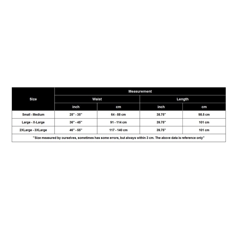 - Size: Small-Medium (US 4 6 8 10): Waist: 25" - 35" / 64cm - 88cm Length: 38.75”/ 98.5cm || Large-X-Large (US 12 14 16 18): Waist: 36" - 45" / 91cm - 114cm Length: 39.75”/ 101cm || 2XLarge-3XLarge (US 20 22 24): Waist: 46" - 55" / 117cm-140cm Length: 39.75”/ 101cm