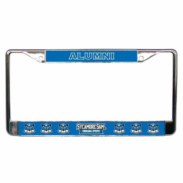 Show your support for Indiana State University with this unique license plate frame. This package comes with 1 - 6"x12" license plate frame. Our license plate frames are aluminum with a chrome finish. License plate frame has pre-drilled holes for easy mounting. Durable and long lasting. Great for fundraisers or gift giving!