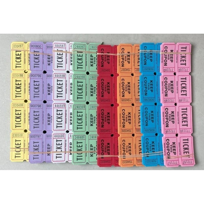 Indiana Ticket Company 200 Double Stub Raffle Tickets Split the Pot 50/50 2 Part Folded As Pictured - Purple