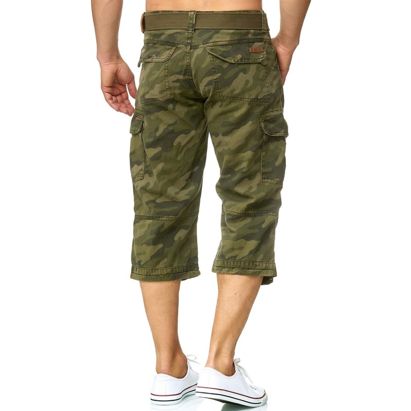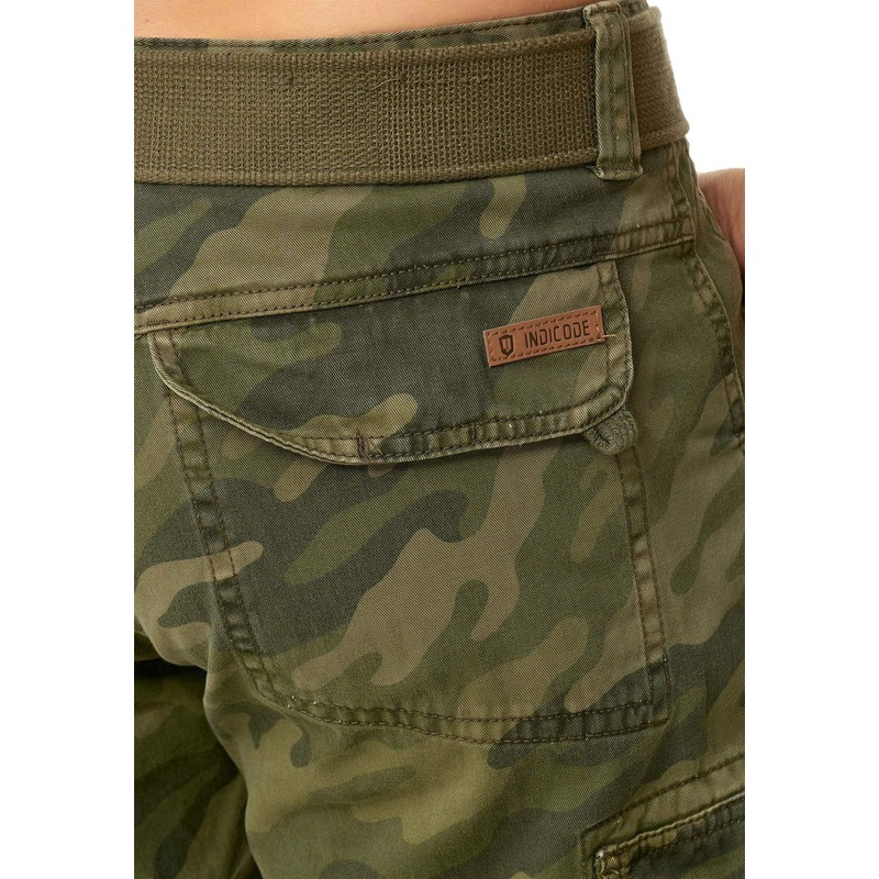 Indicode Men's Nicolas Check 3/4 Cargo Shorts Checked with 6 Pockets Including Belt made of 100 % Cotton for Summer (70-175bs Nicolas Check) - Dired camouflage Plain, size: xxl