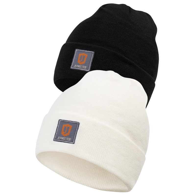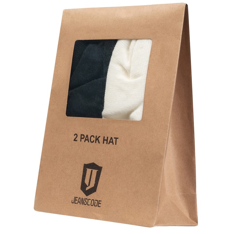 Indicode Unisex Vulcano 2-Pack Winter Hat, Knitted Beanie Hat, Off-white/black