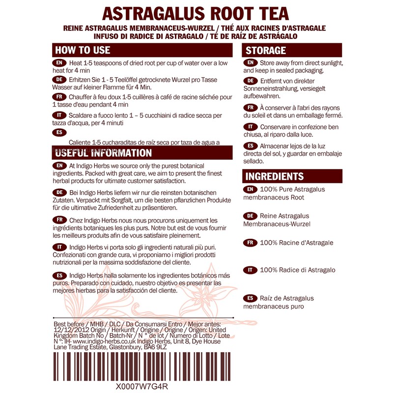 - HOW TO PREPARE: To make a tea decoction from this Astragalus root add 1 - 5 teaspoons of dried, loose root to a pan and boil in 300ml - 350ml of water on a stove for 3 - 4 minutes. Strain into a mug and serve. Drink two or three times per day.