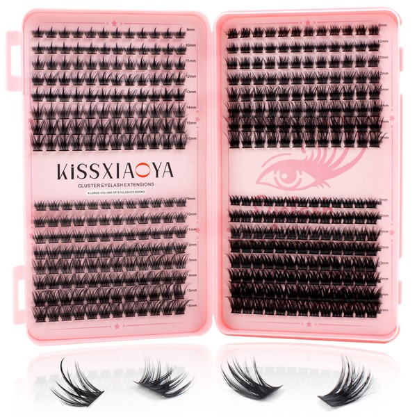 - 💖【The New DIY Eyelash Extensions】: 392Pcs Cluster eyelash are made of premium black PBT material, soft to touch, comfortable to wear, silky and glossy, does not harm your skin and your eyes, easy to pick up from the roots by tweezers without falling apart. Specially designed for DIY eyelash extension. Try the perfect set for DIY cluster lashes, so convenient to use at home or travel. Money & time saving to enjoy your life!