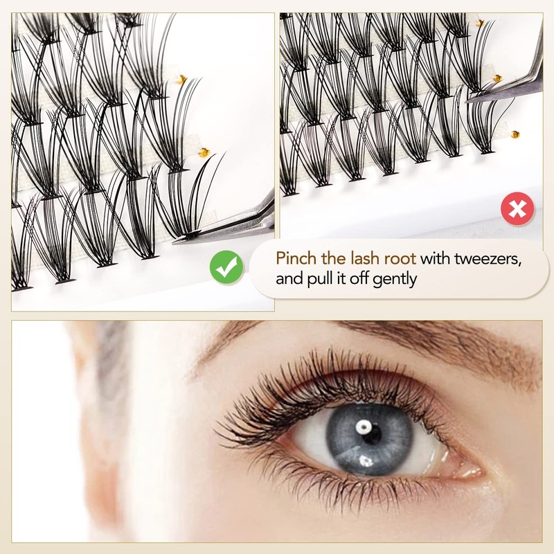 - Individual eyelash clusters are very easy to apply. Artificial eyelash clusters easy to remove from the tape. No residue, no sticking and no kinks. Faster and easier than single eyelash extensions. DIY cluster eyelashes, get a perfect, beautiful look in minutes and keep them for 1-2 weeks with the right glue. Cluster lashes are the best choice for DIY eyelash extension at home. Save time on your busy schedule.