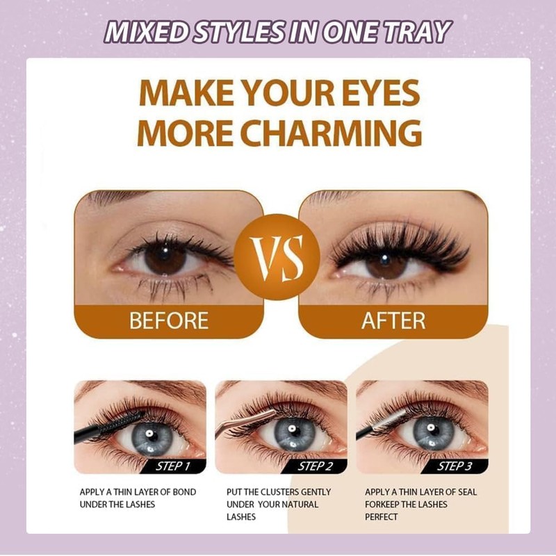 - 【Look Like Lashes Extensions】:The D curl design natural wispy cluster lashes, which are soft and full of volume, give you a super natural and fluffy eyelash extension effect.Save your money and time without visiting the salon.