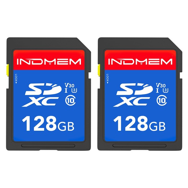 INDMEM 128GB SD Card 2Pack, C10, U3, V30, High Speed up to 90M/S, SDXC UHS-I ...