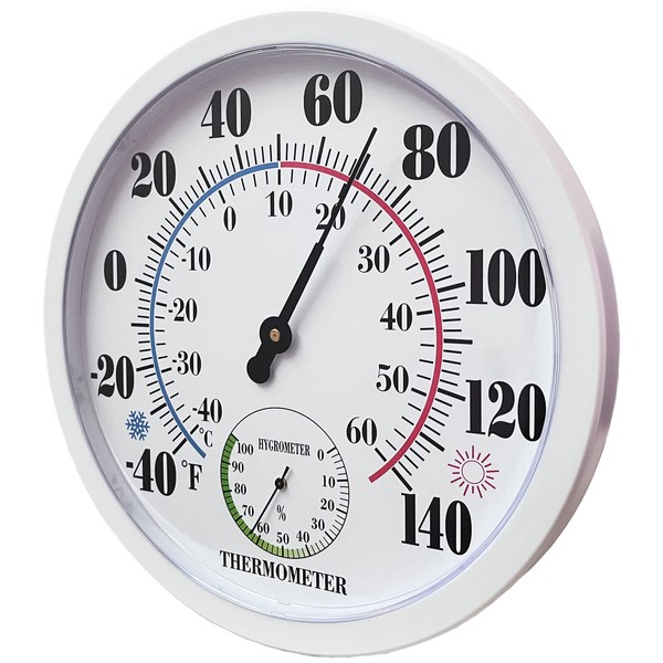 Indoor Outdoor Thermometer Large Wall Thermometer-Hygrometer Waterproof Does not Require Battery (White)