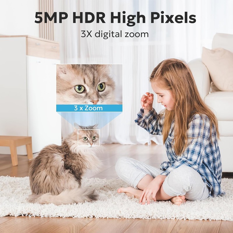 - 【5MP Super HD & Stunning Night Vision 】With 5MP Super HD, and 3X digital zoom, this home security camera indoor captures every detail clearly and allows you to zoom in to see the details that interest you the most. Built-in IR LEDs that bring excellent night vision. Compatible with NVR and Onvif.