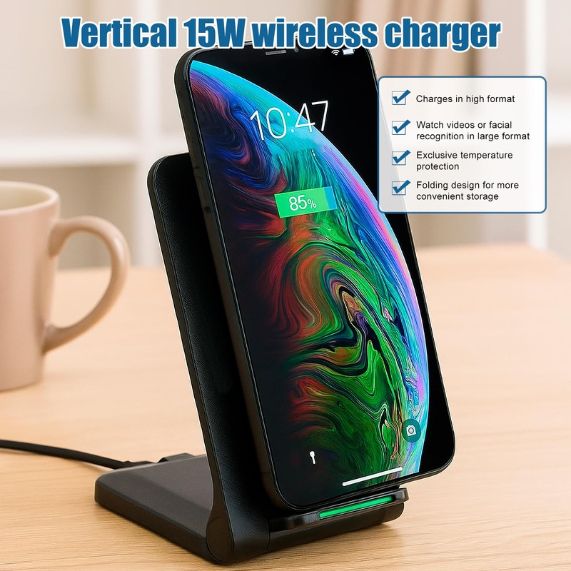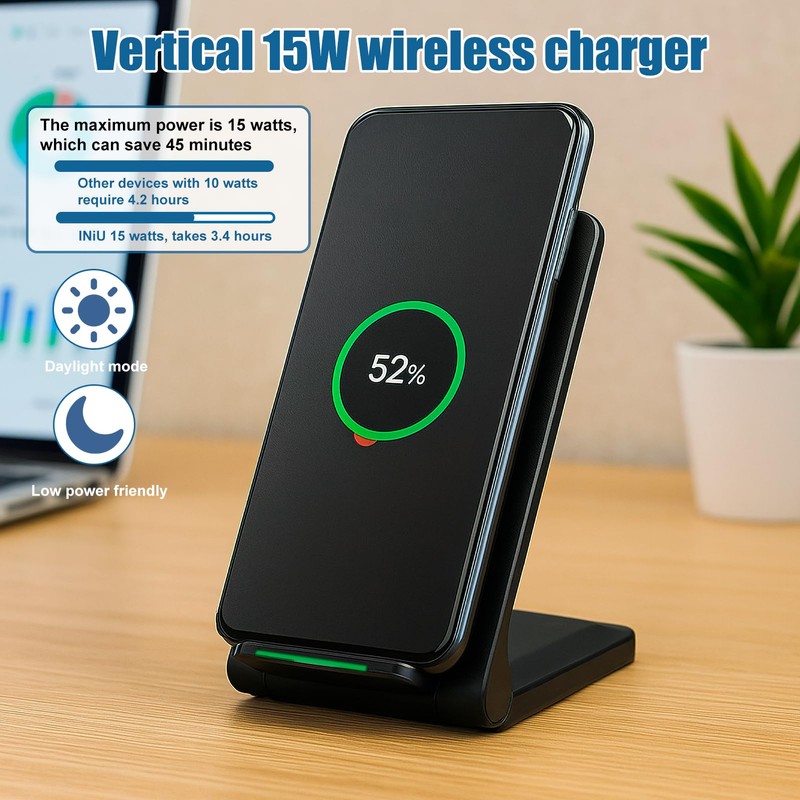 - Save time with wireless charging. Experience fast inductive charging with up to 15W. This certified wireless charging station reduces charging time by up to 45 minutes and is ideal for fast, wireless charging at home or in the office.