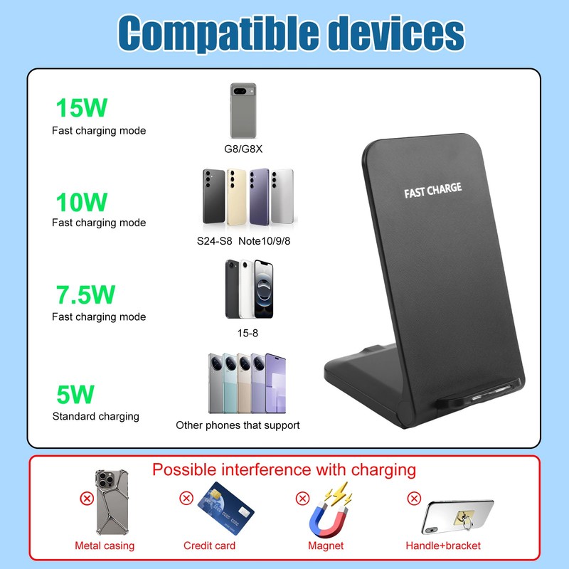 - The wireless charger charging pad offers 15 W. Ideal as a universal mobile phone charging station for your smartphone, simply hang up and charge.