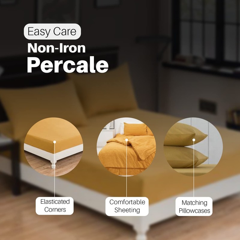 Indus Textiles Fitted Sheets 25cm Extra Deep Percale - Mustard - Single