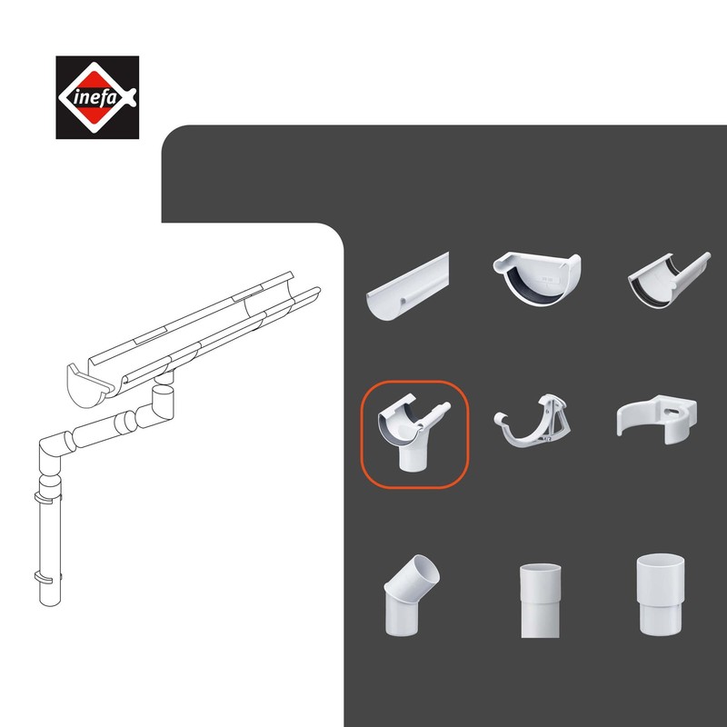 - High stability: the suspension socket (semi-circular) from INEFA provides a connection between the rain gutter and downpipe and ensures reliable rainwater drainage