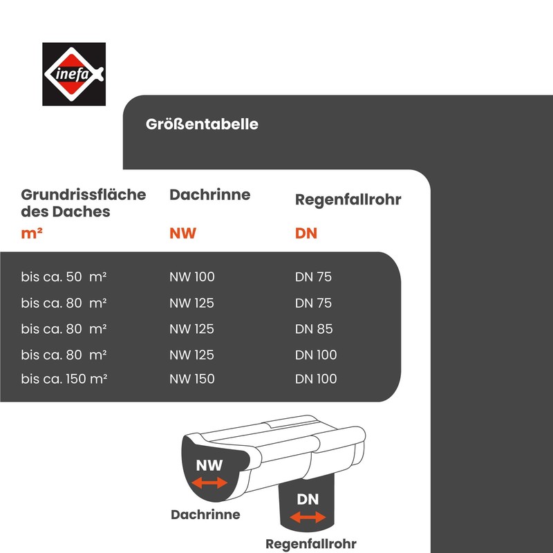 - Perfect fit roof gutter accessories: INEFA items such as gutters, downpipes or leaf guards can be found in our range