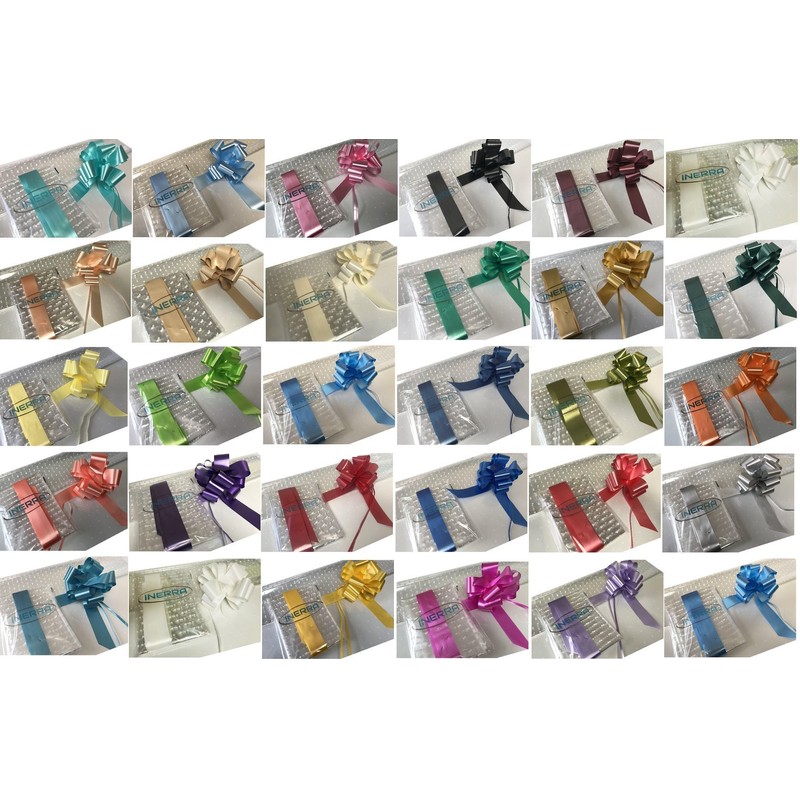 - BOW: Features 14 Loops. INERRA Bows feature a soft shine, approximately 7 Inches diameter when formed. Simple and clear instructions included. (Simply pull the inner cords and the bow will form).