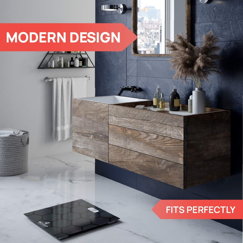 - LOOKS GOOD IN ANY ROOM: No need to hide your scale! This elegant body weight scale was expertly designed in Southern California to enhance the style of the room.