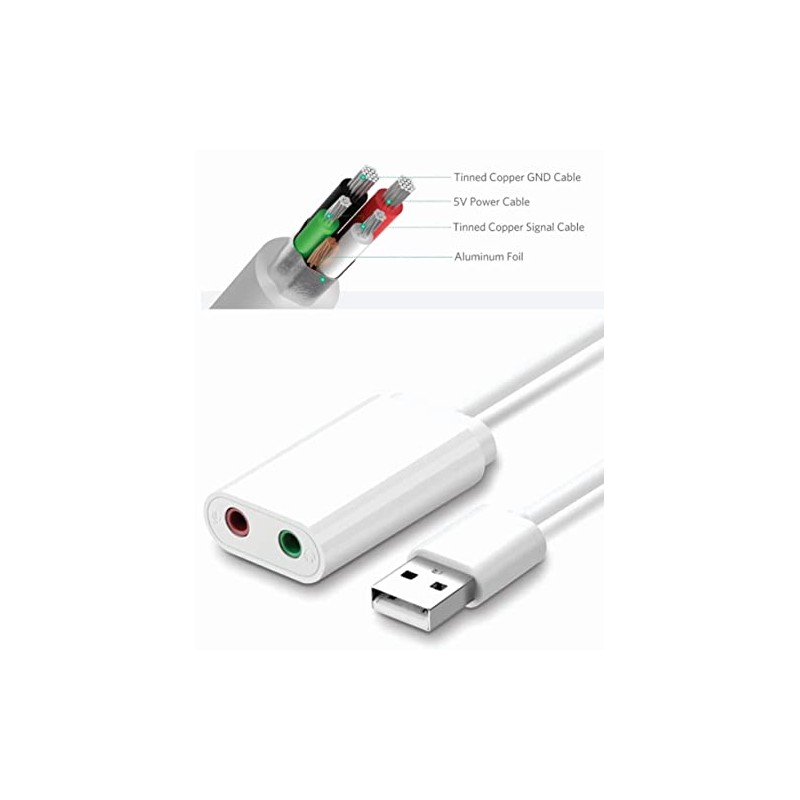 INEWPRODUCTS USB Audio Stereo Sound Card Adapter,3.5 mm Headphone and Microphone Jack (White)