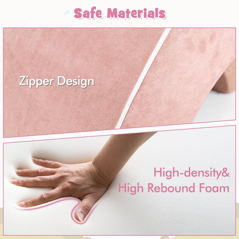 INFANS foam rainbow kids couch is composed of 3 deremovable arch foam and 3 different colors of fabric. It can be transformed into a crawling tunnel, kids couch, children's table, seat cushion, climbing mat, swing board and so on through different combinations. Create a creative playground for kids. For the ultimate comfort experience, this climbing blocks features a soft and stretchy 30D filling sponge. In addition, the faux suede cover is skin-friendly and breathable, bringing more comfort. The process of hiding the zipper head prevents young children from tearing the zipper and damaging the fabric cover.