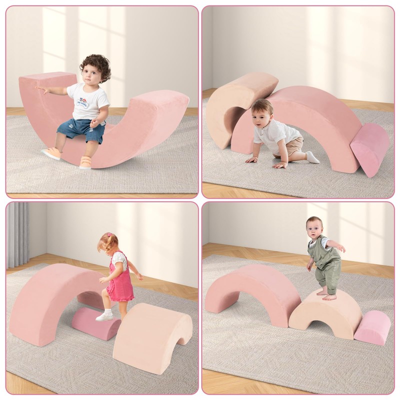 INFANS Climbing Toys for Toddlers, 3pc Foam Climbing Blocks Rainbow Shaped Indoor Play Set, Soft Equipment Modulars Rainbow Crawling Tunnel Playroom Couch for Children Playroom Baby (Pink)