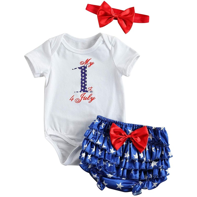- Independence Day design--- Independence Day outfits Baby Girl,My 1st 4th of July print &American Flag Heart print bodysuit,stars printed bloomer shorts, with bow headband, super cute and patriotic outfit, great for celebrating 4th of July.
